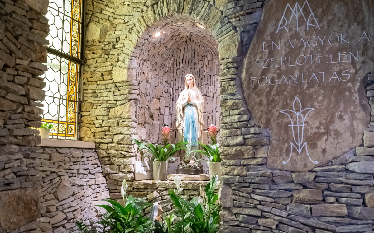 The Basilica is located on Tapolcai Road, parking is available in front of and near the basilica.