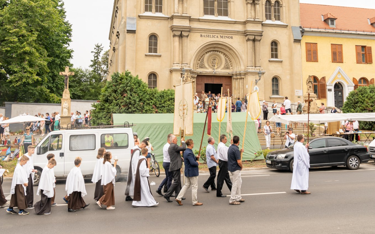 The foundation stone of the basilica was laid in 1927, but it had to wait for more than ten years for its consecration. The monastery part, the parish, and the place of training of the religious candidates, the novitiate, are all part of the complex. The neo-Romanesque religious building, 53 meters long and 18 meters wide, was designed by Brúnó Bruchwieser , an architect from Vienna, and was helped in its construction by Béla Marchall, an architect from Győr, and Ferenc Langmár , a builder. The bells are a testimony to the work of László Szlezák, a bell founder. The marble altars and sculptures were created by Lajos Krasznai (Krausz). The main altar was first created in 1932, based on the model of one of the altars of the basilica in Lisieux, and in the following years the side altars depicting the Virgin Mary and Jesus, Saint Joseph and Saint Stephen were also completed. The side altars of Saint John the Baptist and Saint Teresa were made later. The sculptures of Saint Florian, Saint John of Nepomuk and the Georgics are located in front of the building. On May 22, in 1938, the basilica was consecrated by His Eminence Adeodato Giovanni Piazza. The basilica did not escape the Second World War unscathed, and the repair work lasted for years after the war ended.