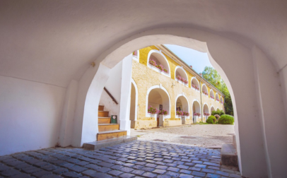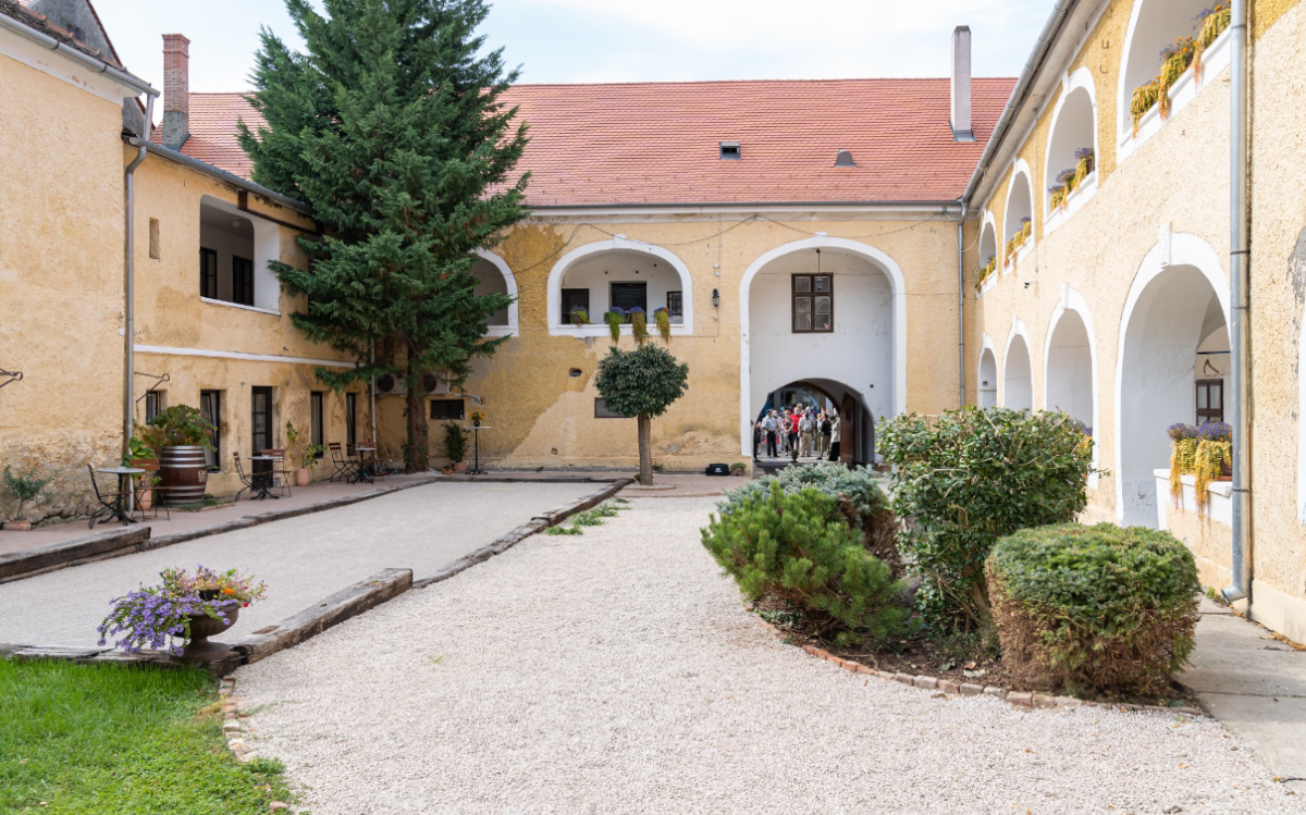 Step into the courtyard of the Pethő-house, where the ground floor and the first floor Baroque arcades are opened up to you, which are decorated with brightly coloured pansies from spring to autumn. At the end of the courtyard we find the synagogue built by György Festetics around 1780, as well as the accompanying biblical garden.