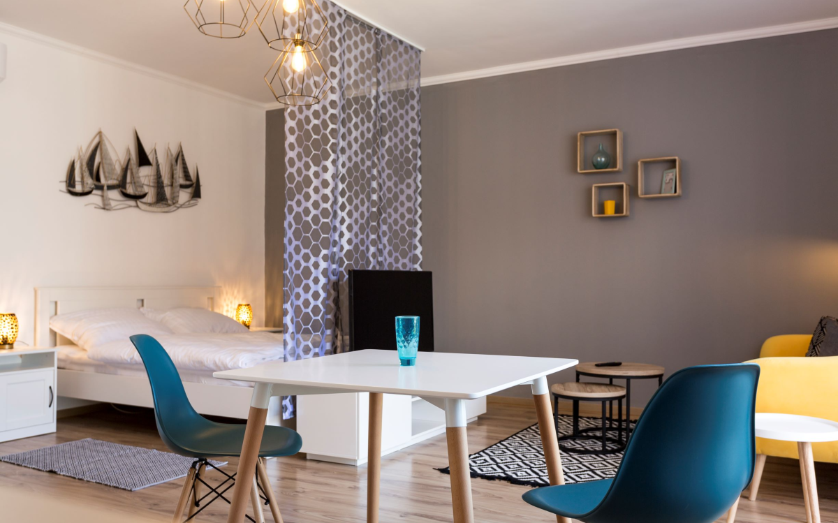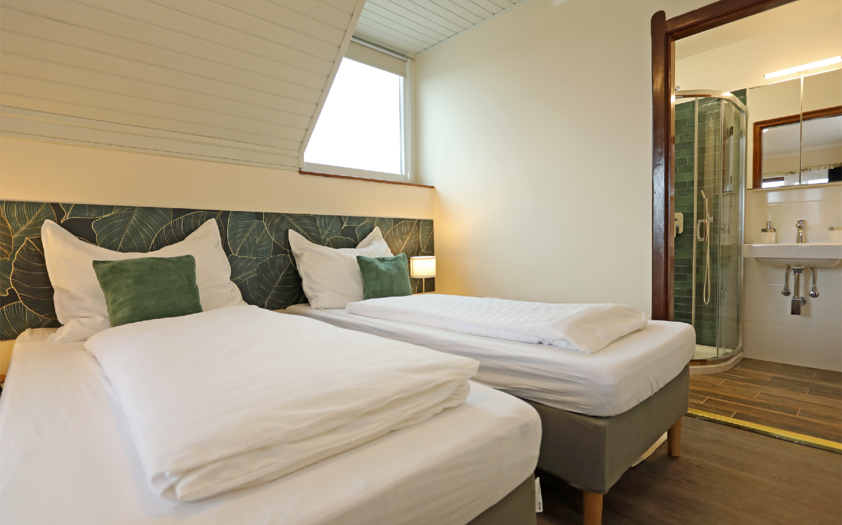 From the first floor the rooftop Shroud Cloud apartment can be reached via an internal staircase. It has two bedrooms, a bathroom and a well-equipped kitchen. The apartment gained its current appearance in 2019 and, like the other units, of course it is also air-conditioned.