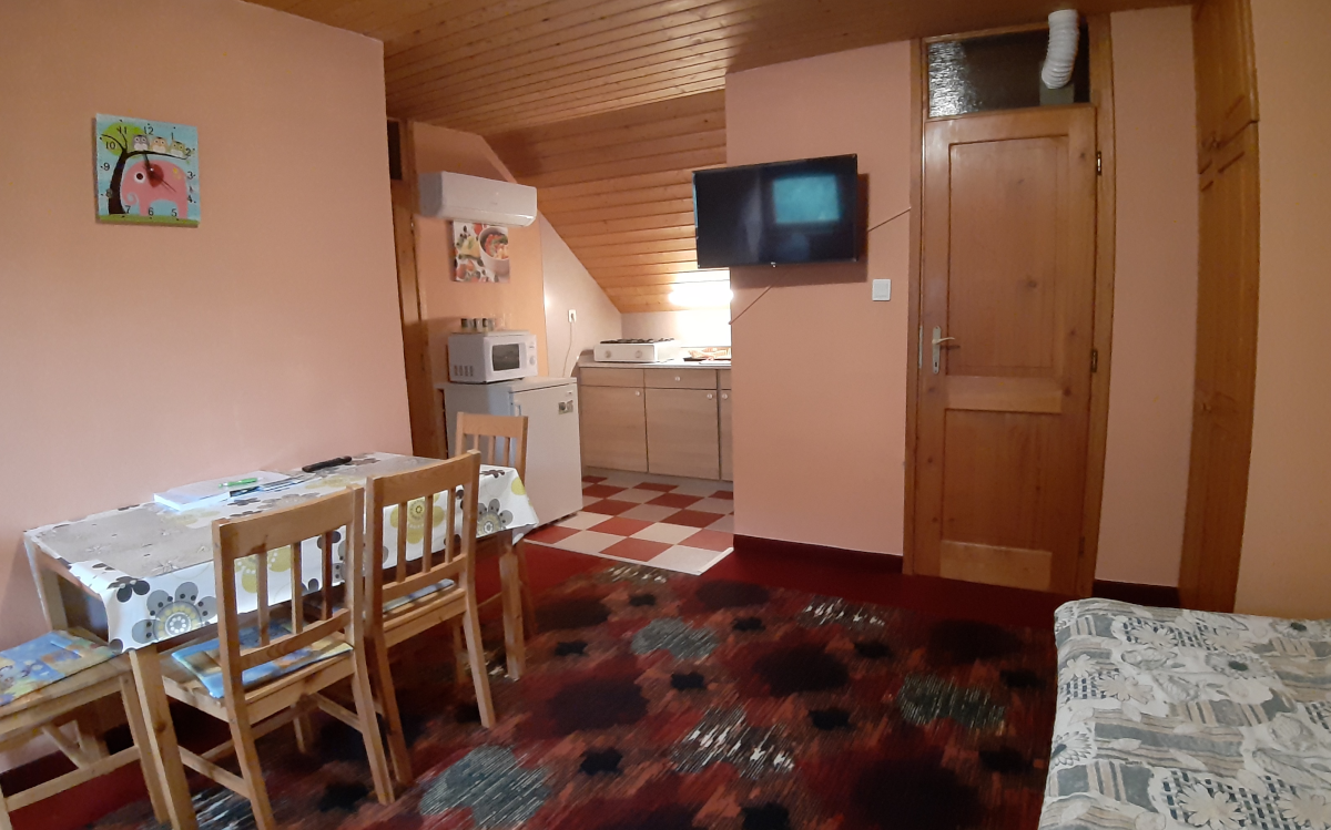 This 4-person apartment is ideal for families and children. Floor apartment with separate entrance, two-room apartment consisting of a double bedroom and a living room with two single bed, with 4 chairs and a dining table. Air conditioning is also available in this apartment, optionally.