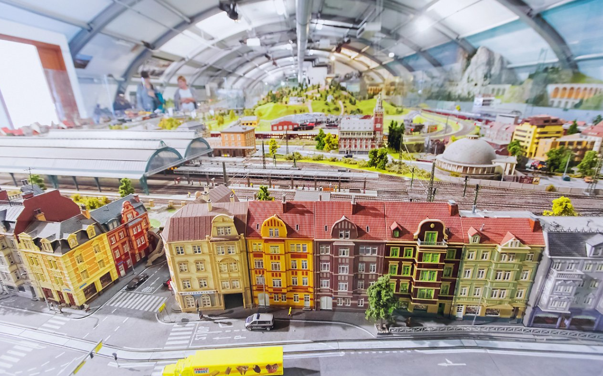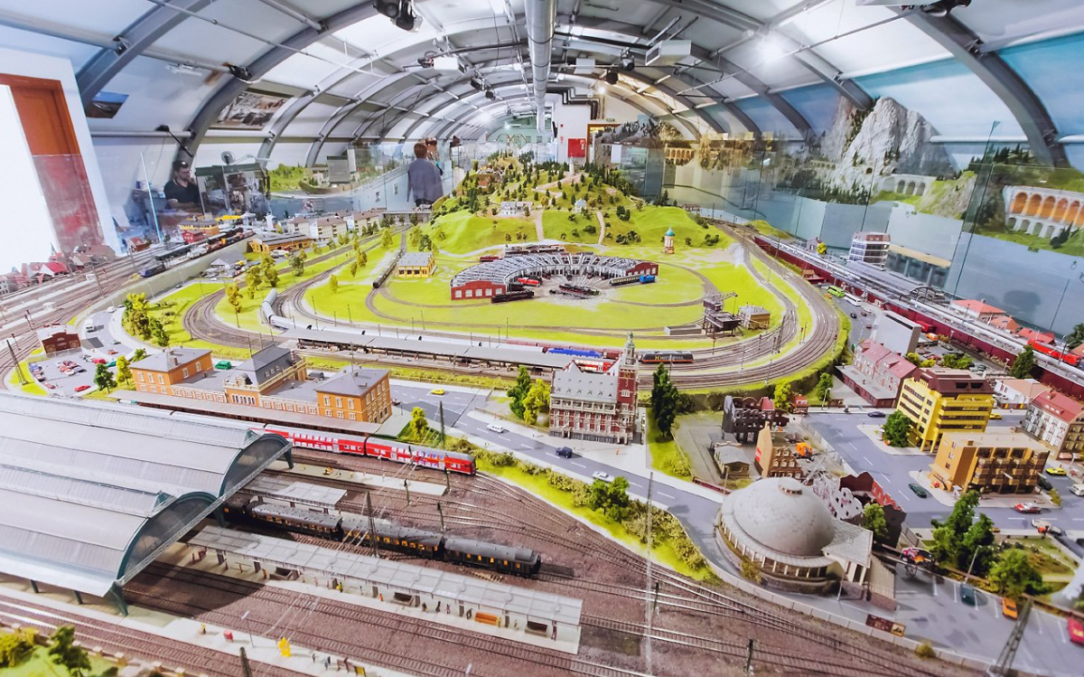 ÉrdekességA világon ez az egyik legnagyobb hegyivasút-terepasztal, amely szemlélteti a magasságbeli különbséget és valamennyi műtárgyat teljes hűséggel mutatja be.Az osztrák rész érdekessége, hogy egy, a világörökség részét képező tájat, valamint Európa első hegyi vasútját mutatja be. A németországi egység központi részén az eredeti légi felvétel alapján épült nürnbergi pályaudvar látható, míg kicsivel arrébb egy német fantáziaváros kapott helyet, ám az ott látható elemek, mint a freiburgi városkapu, a berlini tv-torony a valóságban is létező épületek, építmények mása.