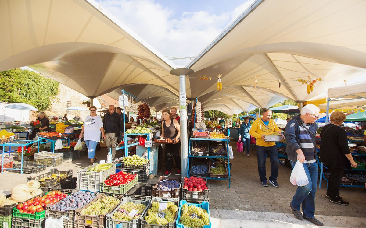 Friss zöldségek, gyümölcsök, kézműves pékáruk várnak rátok széles választékban, mellette helyi és környékbeli árusok kínálnak kürtőskalácsot, kecskesajtot, mangalicaszalonnát és mindent, mi szem s szájnak ingere.A parkoló felőli részen található az Iparcikk piac. Itt fellelhetünk régiségboltot, ruhaüzletet, virágboltot, hentest, gyógynövény drogériát, amennyiben kulcsot szeretnénk másoltatni, arra is lehetőségünk van. A fodrászat és a kávézó egyesítését találjuk a Borbély&Caféban.